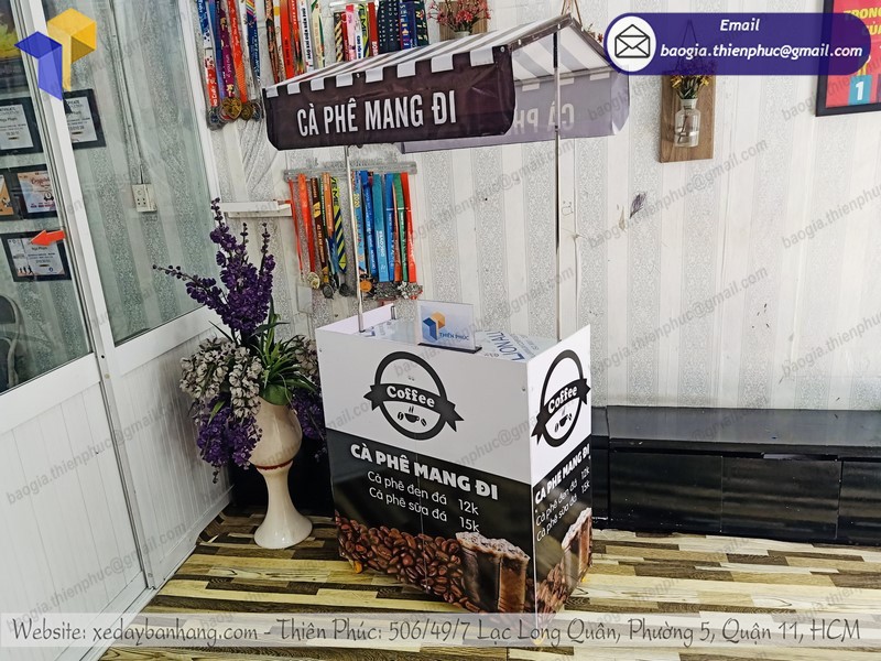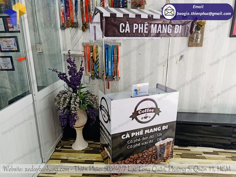 Bởi Thiên Phúc luôn lựa chọn chất liệu tốt nhất để sản xuất. Luôn sáng tạo và khéo léo trong việc phối màu, lựa chọn đề can. Chính vì thế mà những mẫu xe đẩy bán cà phê do Thiên Phúc sản xuất luôn có màu sắc tươi sáng. Bên cạnh đó là những hình ảnh sinh động, khẩu hiệu dễ nhớ, dễ thuộc.