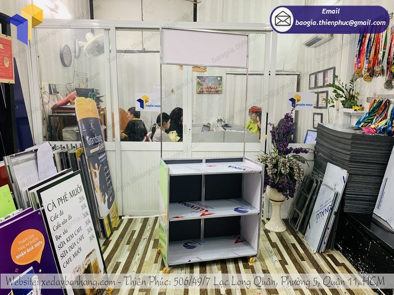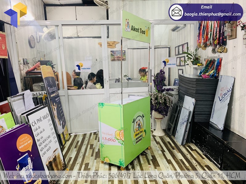 Với kinh nghiệm nhiều năm trong lĩnh vực gia công, sản xuất xe đẩy bán hàng, Thiên Phúc tự hào là địa điểm cung cấp xe bán trà chanh mang đi uy tín của quý khách hàng.