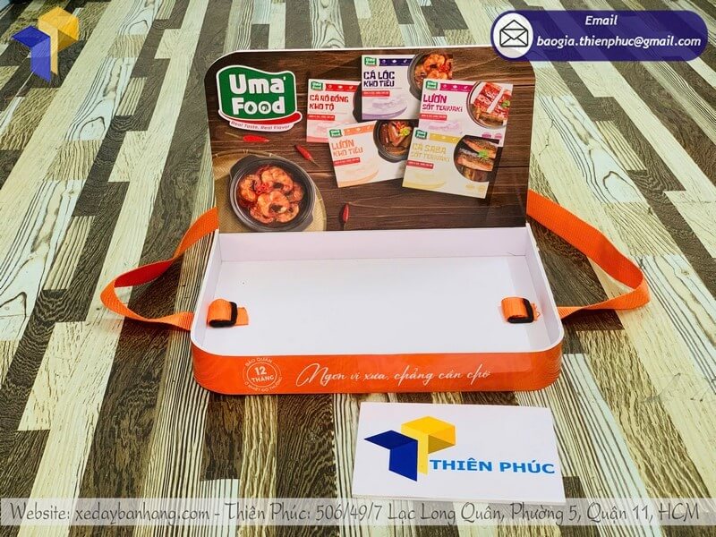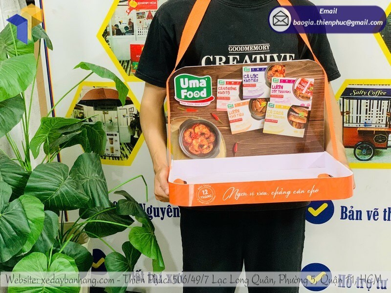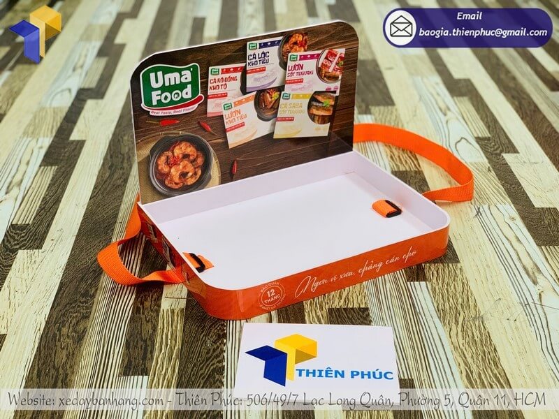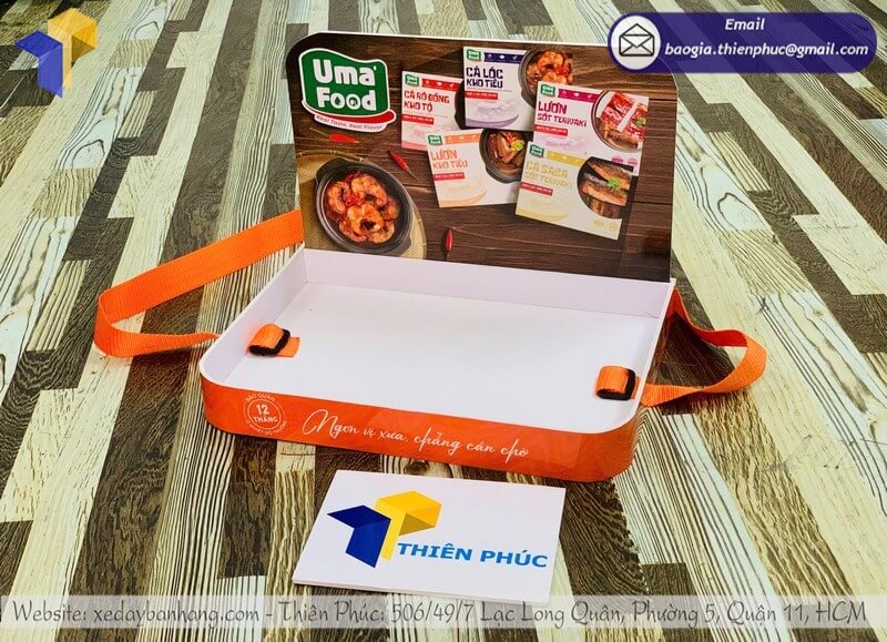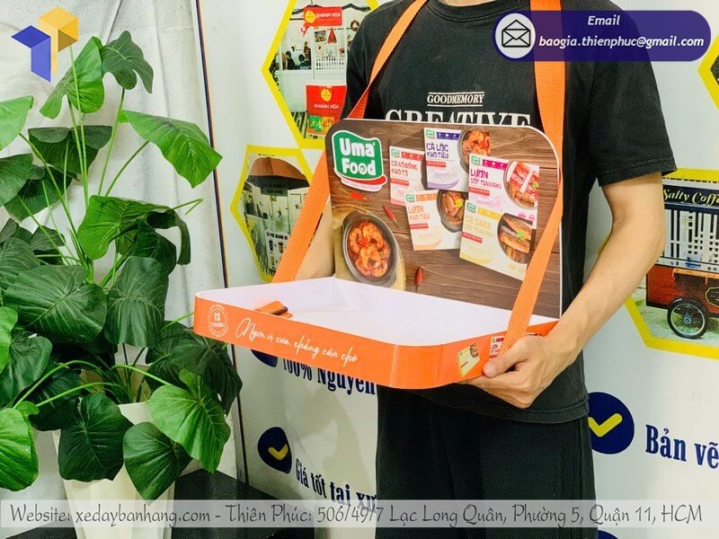 - Roadshow, sự kiện ngoài trời: Khay tiện lợi, chống nước, giúp PG hoạt động liên tục mà không phải lo lắng về logistics.