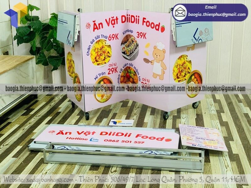 Tên sản phẩm: Bán quầy ăn vặt hàng rong gấp xếp đẩy di động giá sỉ ĂN VẶT DIIDII FOOD