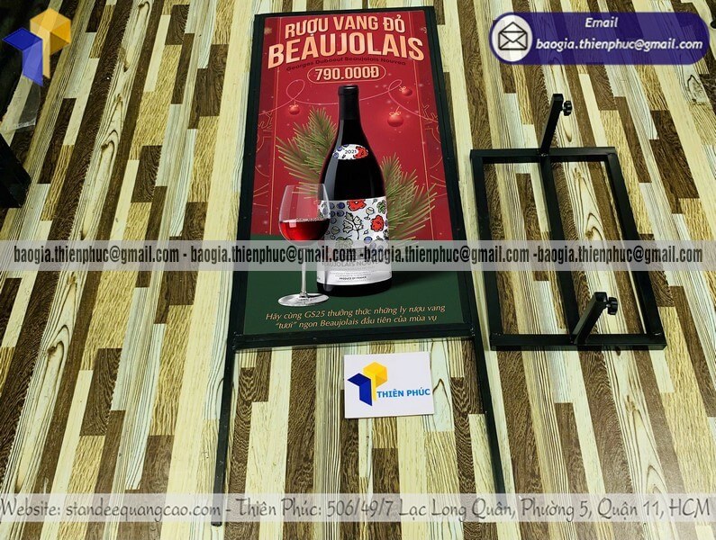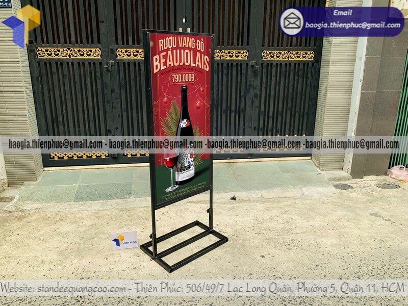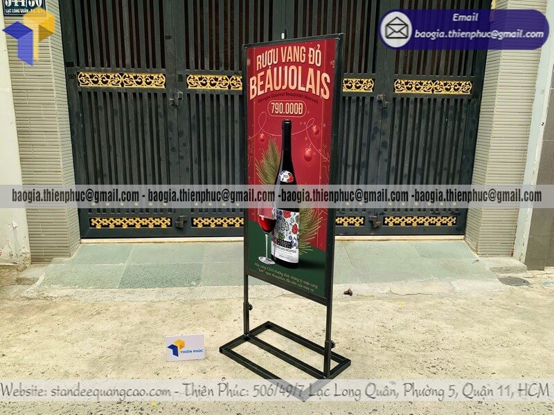 Tên sản phẩm: Bảng hiệu quảng cáo đứng bằng khung sắt in logo 2 mặt với sản phẩm RƯỢU VANG ĐỎ 790.000Đ