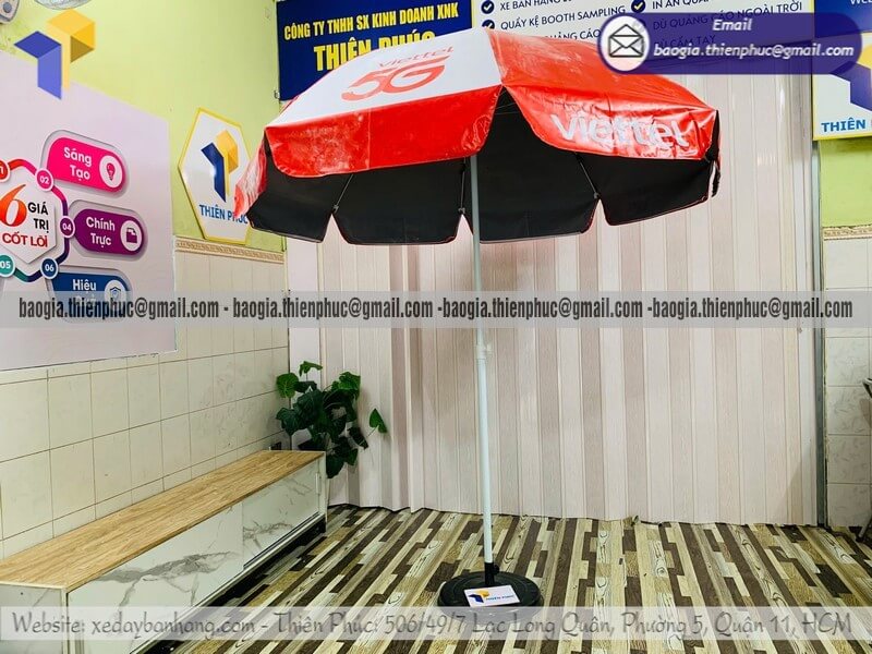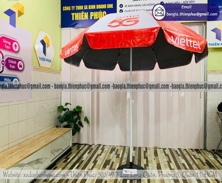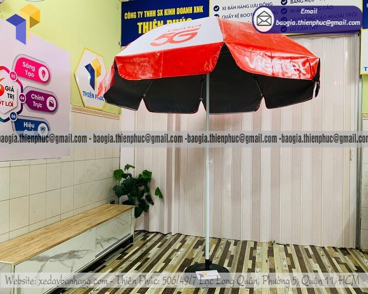 Tên sản phẩm: Báo giá dù tròn in bạt quảng cáo dựng ngoài trời rẻ cho thương hiệu nổi tiếng VIETTEL 5G