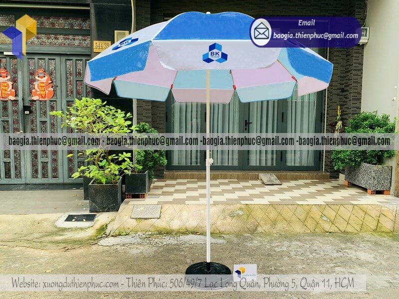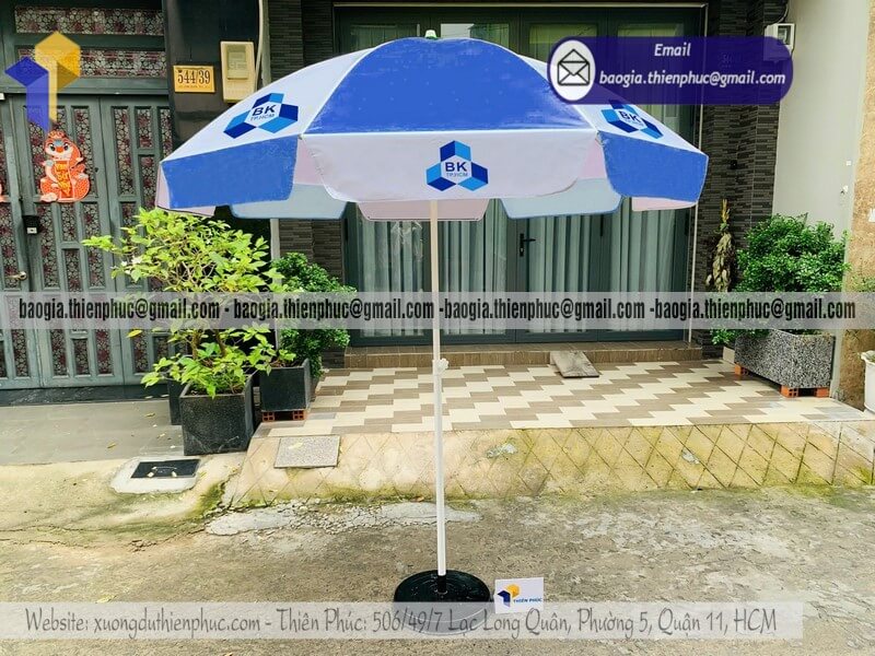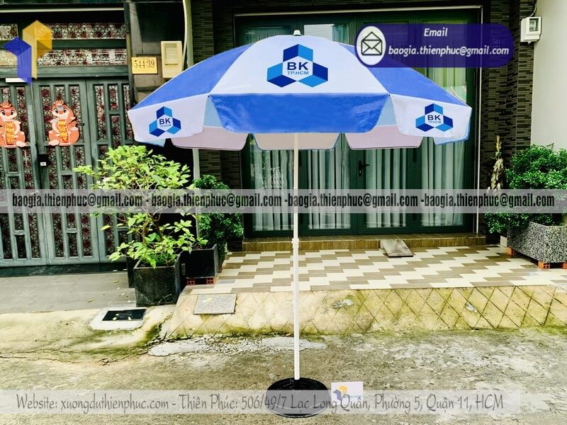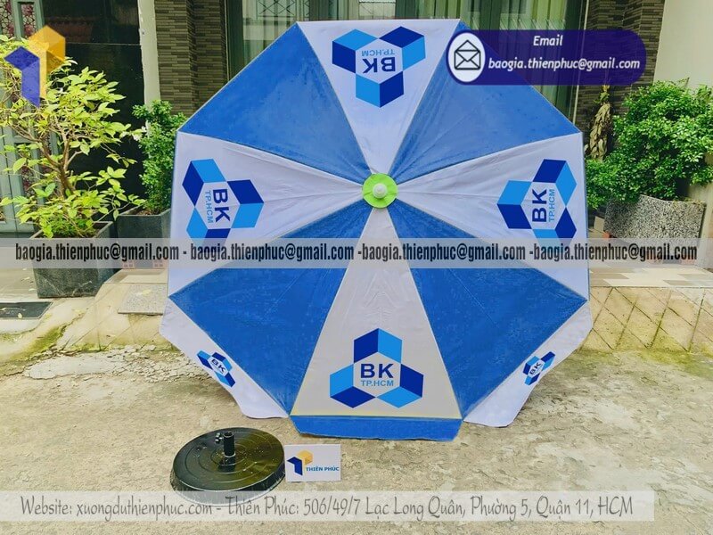 Tên sản phẩm: Báo giá dù tròn lớn quảng cáo che ngoài trời mới nhất với logo nhãn TRƯỜNG ĐẠI HỌC BÁCH KHOA TPHCM (BK)