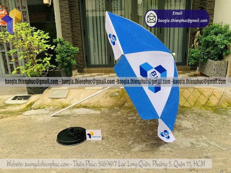 Báo giá dù tròn lớn quảng cáo che ngoài trời mới nhất - Xưởng sản xuất & Công Ty Thiên Phúc chuyên cung cấp nhiều mẫu ô/dù quảng cáo tròn lớn che ngoài trời & thiết kế - in ấn logo với kích thước chủ yếu 2.2m hoặc 2.4m hoặc lớn hơn 3m.Với giá dao động rẻ nhất - cạnh tranh nhất thị trường chỉ riêng cây ô dù: 600.000đ - 800.000đ/cây; đế dù mua lẻ: 150.000đ/cái. Nếu mua đế cùng cây dù giảm còn 100.000đ/cái. Đặt số lượng lớn nhận ngay nhiều chiết khấu ưu đãi. Hỗ trợ xuất hóa đơn VAT đỏ cho doanh nghiệp & công ty. Liên hệ ngay xưởng Thiên Phúc nhận ngay báo giá nhanh chóng và tư vấn thiết kế logo. Giao hàng nhanh trên toàn quốc.