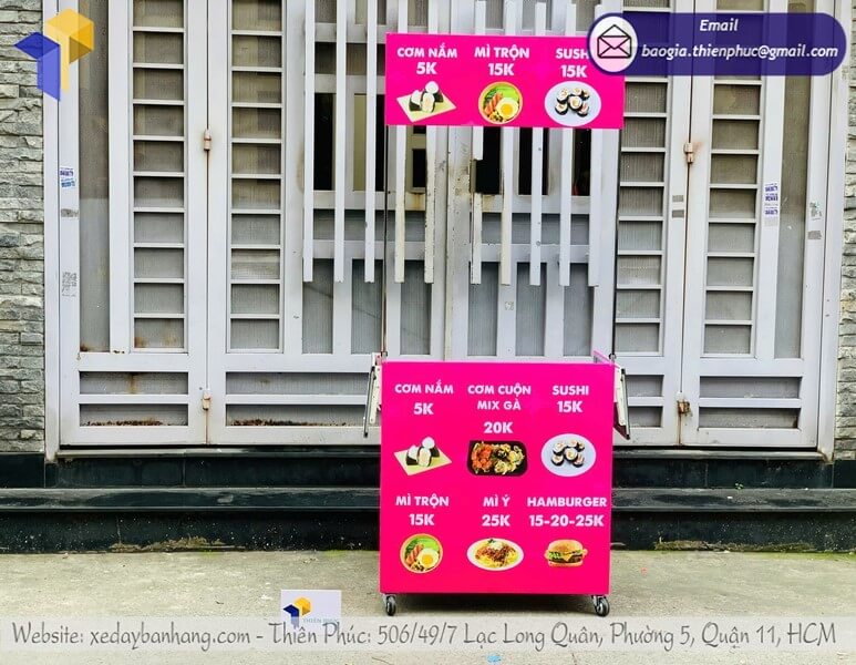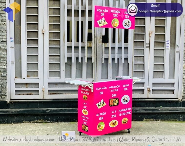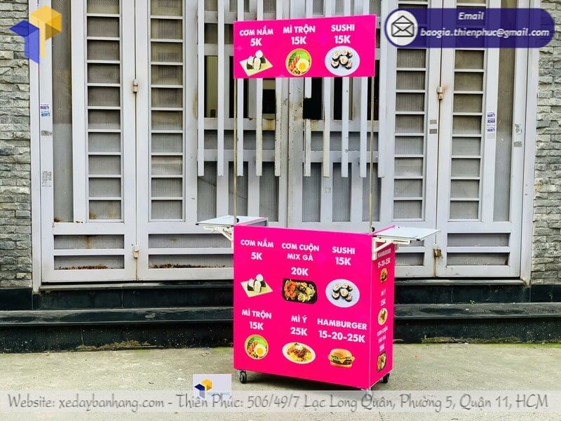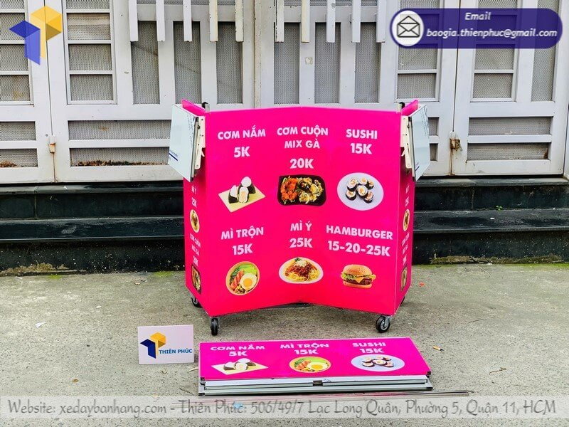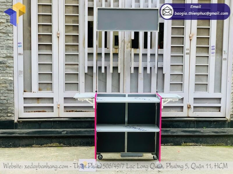 Báo giá kệ bán đồ ăn di động xếp gọn trên lề đường rẻ - Thiên Phúc là xưởng sản xuất trên 10 năm kinh nghiệm trong việc gia công - thiết kế nhiều mẫu kệ - quầy - tủ bán đồ ăn di động xếp gọn bán trên vỉa hè, lề đường,... Với giá rẻ nhất chỉ từ 700.000đ/kệ. Thiết kế logo nhãn hiệu - thương hiệu miễn phí. Đặt từ 10 kệ trở lên, giảm hơn 50.000đ/kệ. Giao hàng nhanh trên toàn quốc.