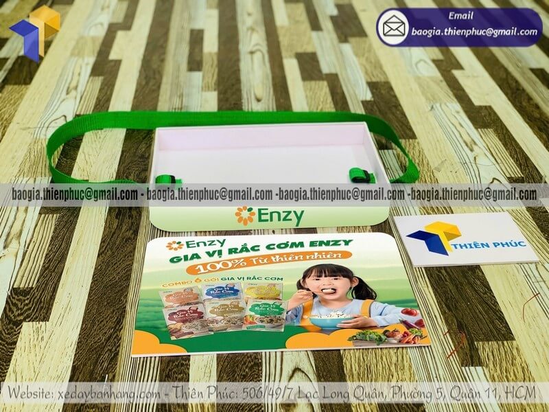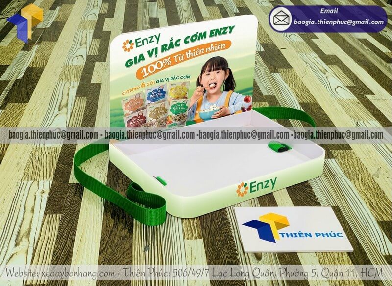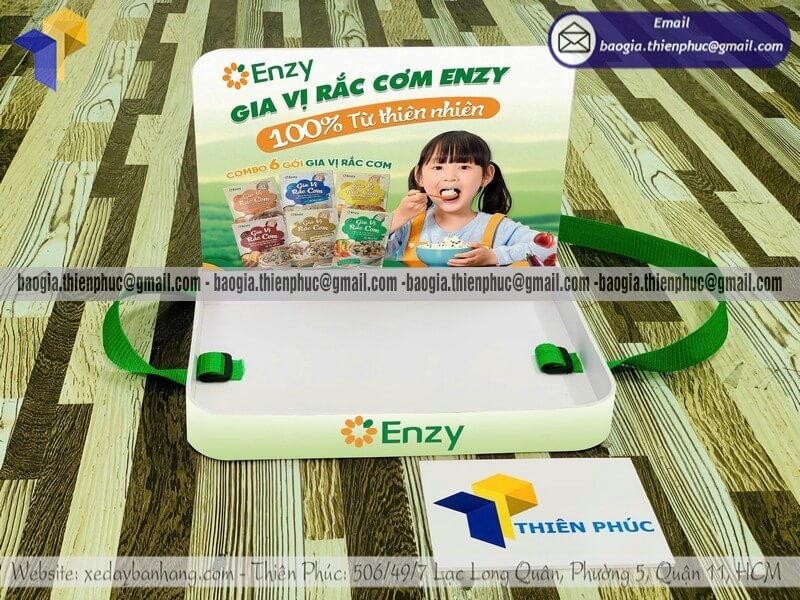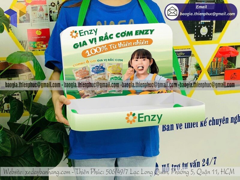 Tên sản phẩm: Báo giá khay đeo cổ cho PG phát sampling tại siêu thị với logo Gia vị rắc cơm ENZY