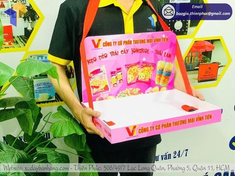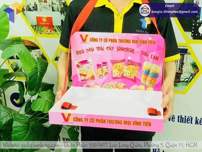- Dễ dàng di chuyển: Nhẹ, gọn, thuận tiện cho nhân viên tiếp thị di chuyển trong siêu thị, trung tâm thương mại hoặc sự kiện.