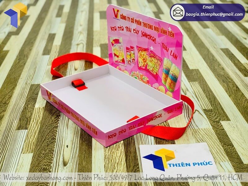 - Ngăn phụ cho phụ kiện: Dành cho thẻ bài, mẫu thử mini, cốc thử, ống hút hoặc dụng cụ hỗ trợ trải nghiệm sản phẩm.