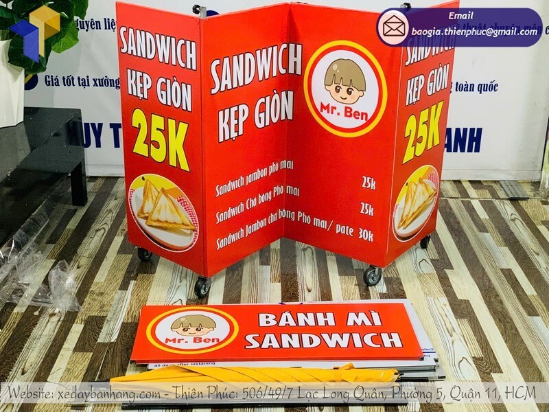 Tên sản phẩm: Báo giá mẫu quầy bán bánh mì dạo lề đường rẻ với logo nhãn BÁNH MÌ SANDWICH