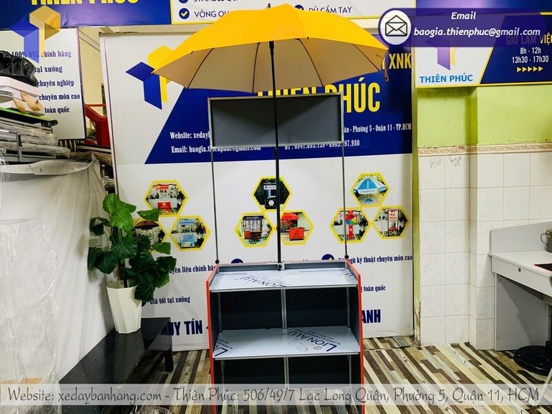 - Mẫu quầy có ô dù che nắng mưa: Giúp người bán hoạt động ngoài trời ổn định, không lo thời tiết.