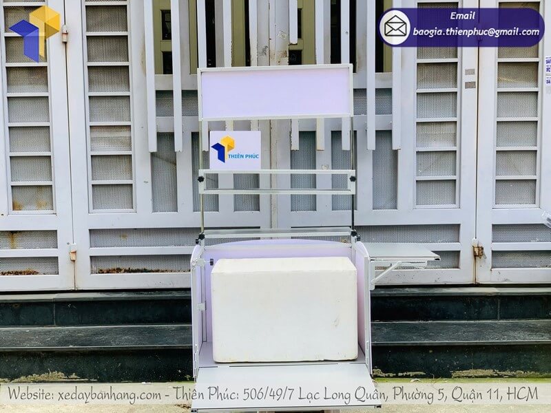 - Thùng bán đồ ăn vặt, bánh mì, xôi sáng lưu động – gọn nhẹ, dễ tháo lắp, di chuyển linh hoạt.