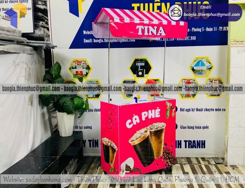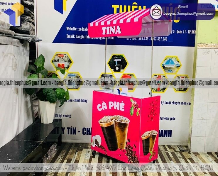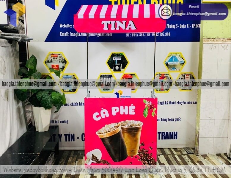 Báo giá quầy bán cafe lắp ráp xếp gọn có mái che - Xưởng sản xuất & Công Ty Thiên Phúc là xưởng chuyên nhận gia công - sản xuất - thiết kế & in ấn logo thương hiệu - nhãn hiệu - menu sản phẩm tủ bán hàng rong lắp ráp lưu động theo yêu cầu khách hàng với hơn 10 năm kinh nghiệm, cung cấp nhiều mẫu tủ/quầy/xe bán hàng gấp gọn lưu động, chỉ cần 700.000đ/xe trở lên với chất lượng ốp bạt,... chưa kèm theo chi phí khác như menu, đèn led, ô dù, kệ xếp,... Hỗ trợ xuất hóa đơn VAT. Đặt hàng từ 10 tủ trở trở lên giảm mỗi kệ 50.000đ. Giao hàng nhanh trên toàn quốc. Thiết kế logo hoàn toàn miễn phí.