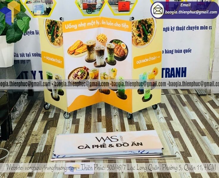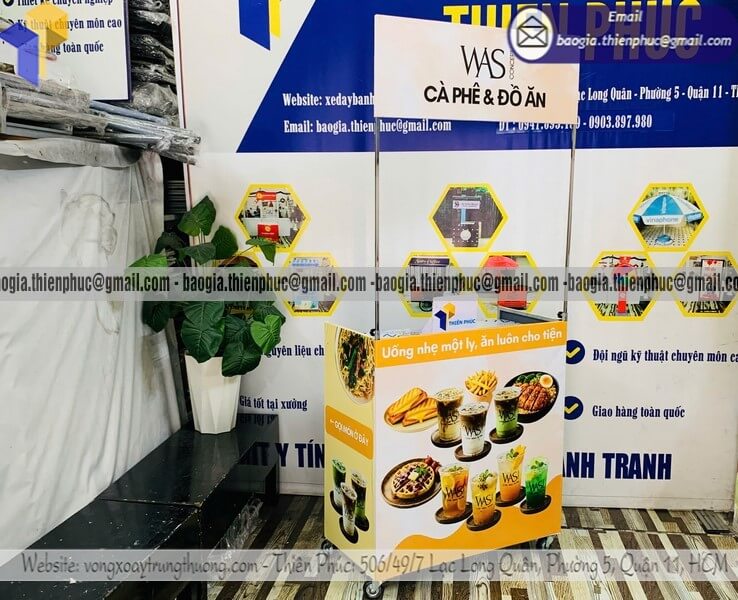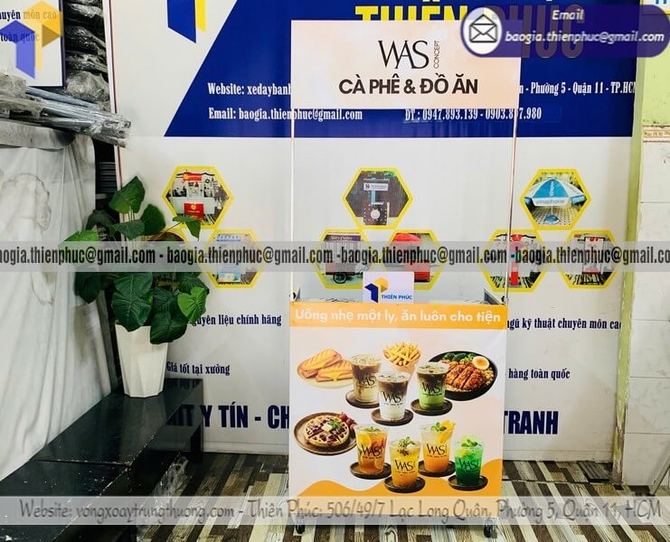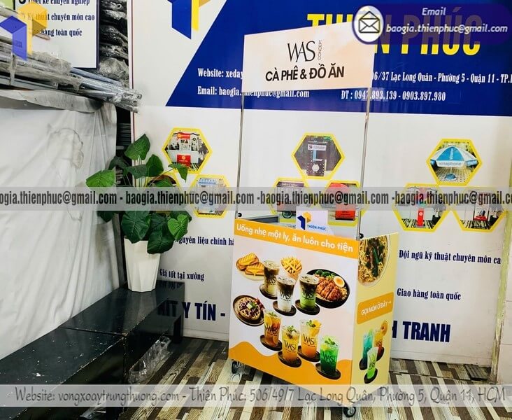 Báo giá quầy bán cafe take away dạo trên vỉa hè gấp gọn - Xưởng sản xuất & Công Ty Thiên Phúc là xưởng chuyên nhận gia công - sản xuất - thiết kế & in ấn logo thương hiệu - nhãn hiệu - menu sản phẩm tủ bán hàng rong lắp ráp lưu động theo yêu cầu khách hàng với hơn 10 năm kinh nghiệm, cung cấp nhiều mẫu tủ/quầy/xe bán hàng gấp gọn lưu động, chỉ cần 700.000đ/xe trở lên với chất lượng ốp bạt,... chưa kèm theo chi phí khác như menu, đèn led, ô dù, kệ xếp,... Hỗ trợ xuất hóa đơn VAT. Đặt hàng từ 10 tủ trở trở lên giảm mỗi kệ 50.000đ. Giao hàng nhanh trên toàn quốc. Thiết kế logo hoàn toàn miễn phí.