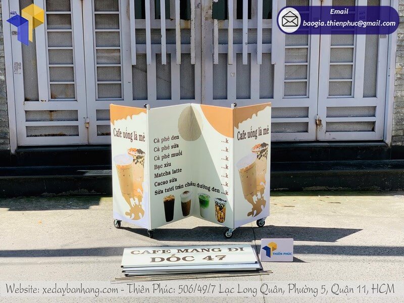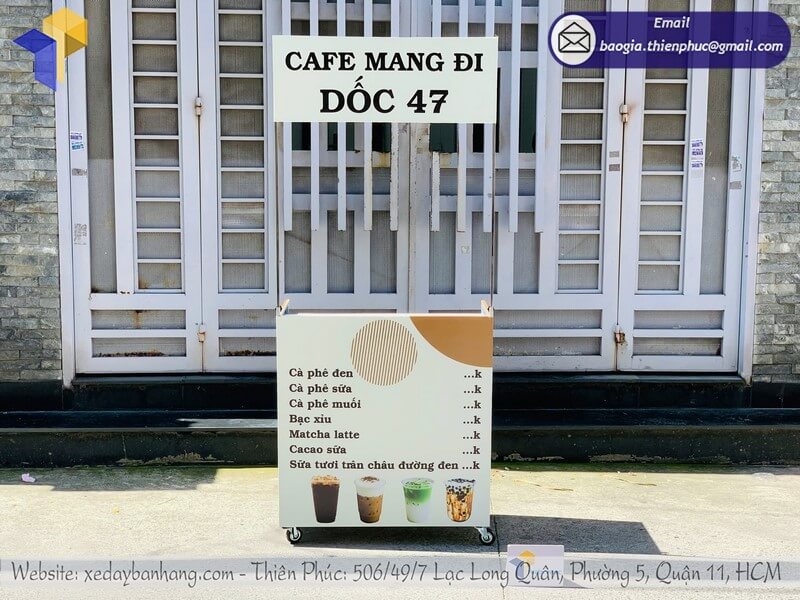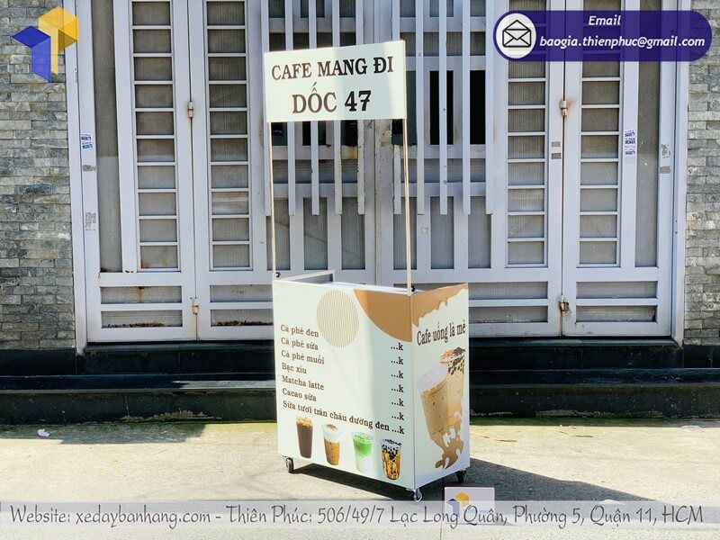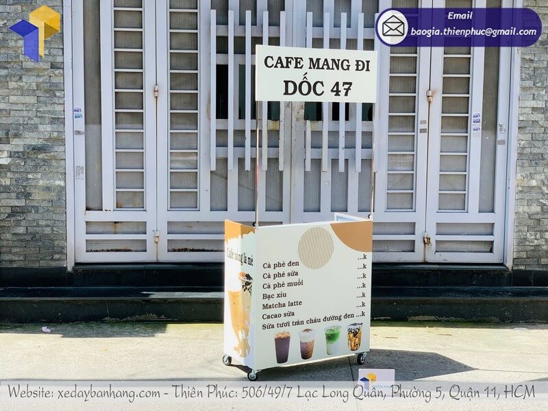 Tên sản phẩm: Báo giá quầy bán cafe xếp gọn vỉa hè rẻ với logo nhãn hiệu CAFE MANG ĐI - DỐC 47