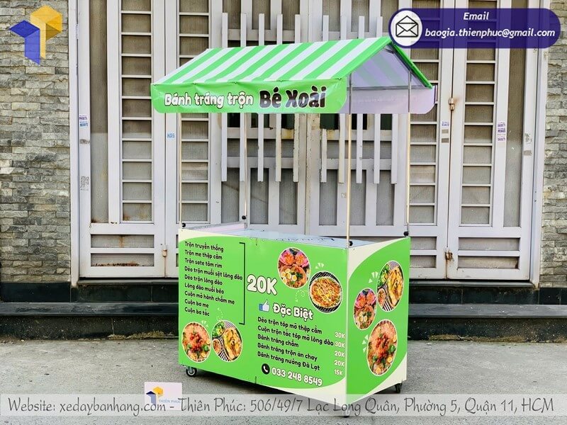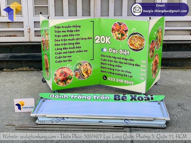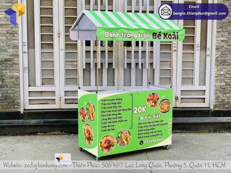 Tên sản phẩm: Báo giá quầy bán đồ ăn nhanh gấp gọn di động đường phố với nhãn hiệu BÁNH TRÁNG TRỘN BÉ XOÀI