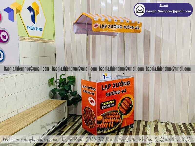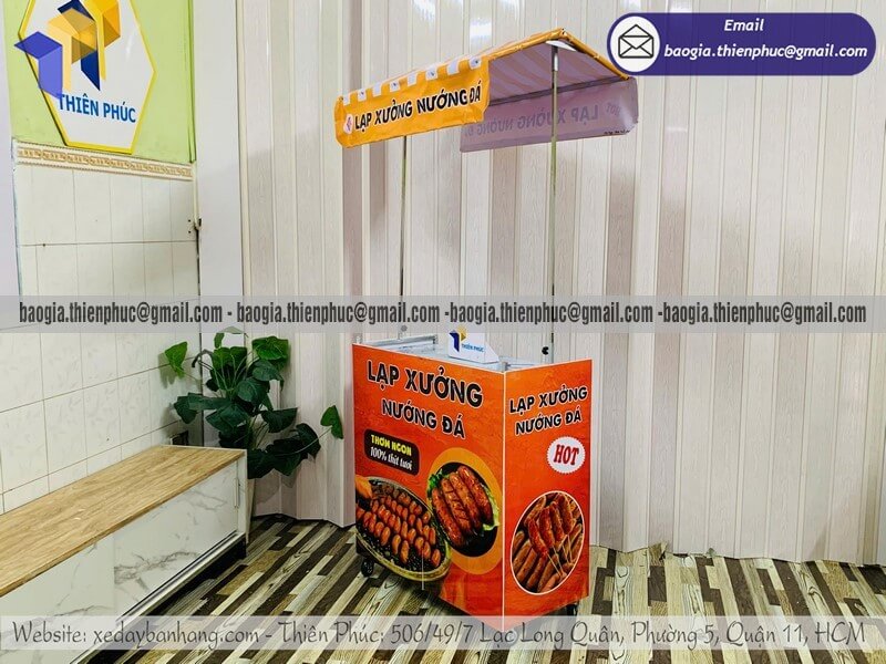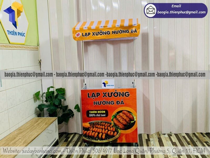 Tên sản phẩm: Báo giá quầy bán lạp xưởng nướng đá hè phố lắp ráp rẻ, có mái che bán lưu động