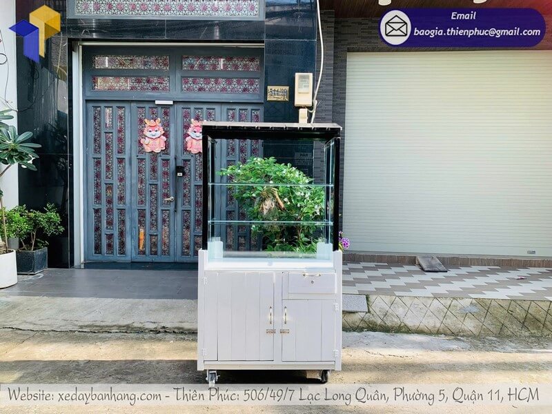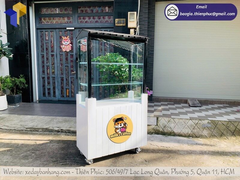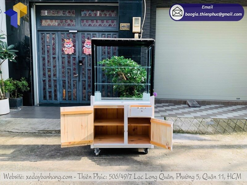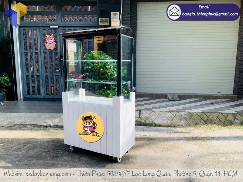 - Di động dễ dàng: Quầy được thiết kế bánh xe chắc chắn, thuận tiện di chuyển trên vỉa hè, trong các khu chợ, hoặc hội chợ.