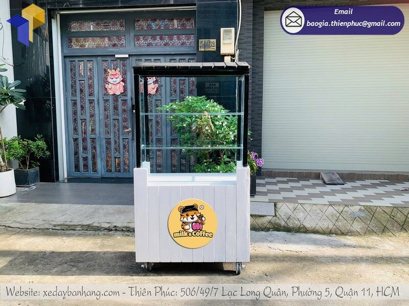 Báo giá quầy gỗ đẩy bán cafe di động trên vỉa hè rẻ - Xưởng sản xuất Thiên Phúc chuyên cung cấp và gia công nhiều mẫu quầy gỗ với giá dao động chỉ với 2.800.000đ/quầy trở lên, không có báo giá cố định do nhu cầu của khách hàng khác nhau. Gia công sản xuất và giao hàng nhanh trong vòng 4-5 ngày. Thiết kế logo miễn phí theo yêu cầu khách hàng. Liên hệ Thiên Phúc để được báo giá chi tiết hơn và đặt hàng ngay hôm nay