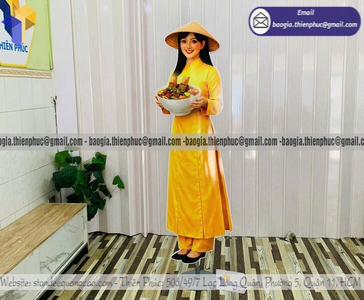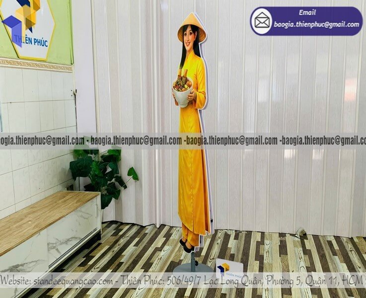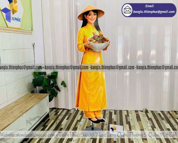 Báo giá standee mô hình người in hai mặt quảng cáo - Thiên Phúc là xưởng chuyên gia công - sản xuất và nhận đặt làm standee mô hình người thật quảng cáo in 3D với nhiều mẫu mã đa dạng và kích thước khác nhau theo yêu cầu. Giá rẻ nhất dao động chỉ từ 700.000đ/cái trở lên. Không có bảng báo giá cụ thể do xưởng nhận đặt làm theo yêu cầu. Hỗ trợ xuất hóa đơn VAT nhanh chóng. Hỗ trợ làm gấp từ 1-2 ngày sau khi duyệt xong thiết kế demo và đặt cọc 50% đơn hàng. Hãy gọi ngay đến HOTLINE ngay bên dưới hoặc nhắn tin với qua ZALO để được nhân viên tư vấn báo giá chi tiết nhanh chóng trong 5 phút.