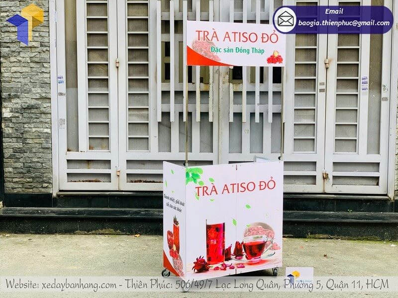 Kích Thước: W80 x H180cmQuy Cách Kỹ Thuật:+ Phần mái che: Ngang 100 cm x Cao 30cm+ Phần xe : Ngang 80cm x Hông 40cm x Cao 80cm+ Bánh xe chịu lực 80kg+ Hai thanh chống inox vuông 12mm giữa xe và mái che cao 1m+ Hình ảnh : In decan ngoài trời máy Nhật sắc nét 1400 DPI+ Xung quanh xe ốp fomat dày 5mm+ Mặt trên xe và vách ngăn bên trong khung sắt ốp ALU+ Khung xương sắt vuông 14mm mạ kẽm chống rỉ sét+ Toàn bộ có thể tháo lắp, gấp gọn dễ di chuyểnThích hợp: cho các bạn trẻ kinh doanh ít vốn mở bán trà sữa, cà phê lưu động, hoặc các đại lý muốn mở rộng kênh bán hàng lưu động