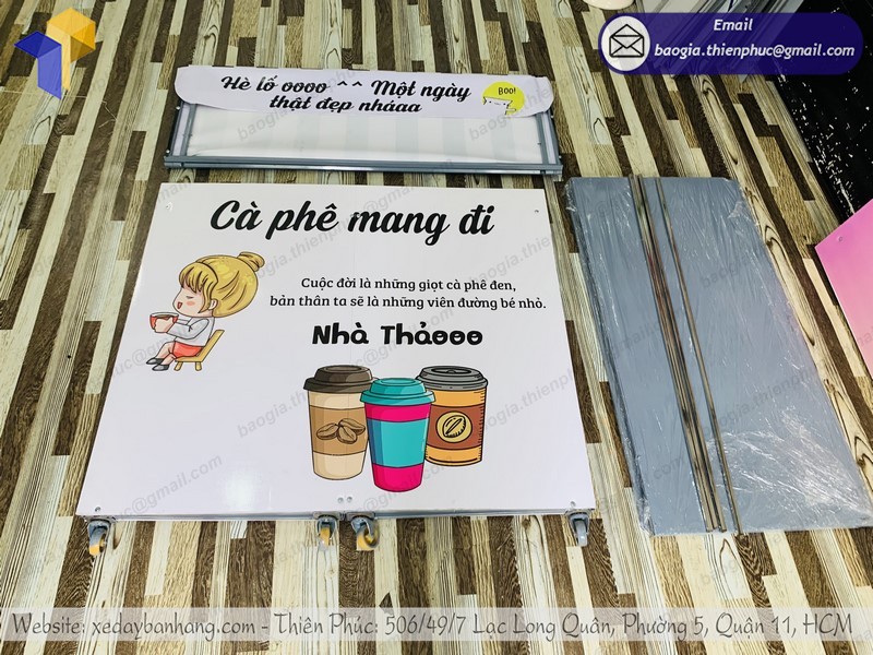 Đặc biệt, Thiên Phúc còn thiết kế riêng đề can xe bán cà phê vỉa hè miễn phí theo ý bạn cùng sự tư vấn từ nhân viên thiết kế cho tới khi bạn có được chiếc xe đẩy ưng ý nhất.