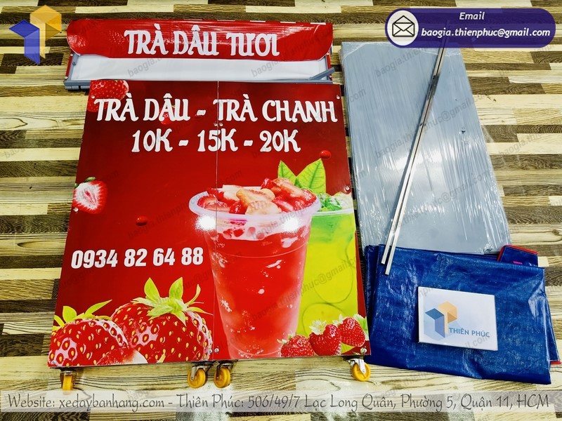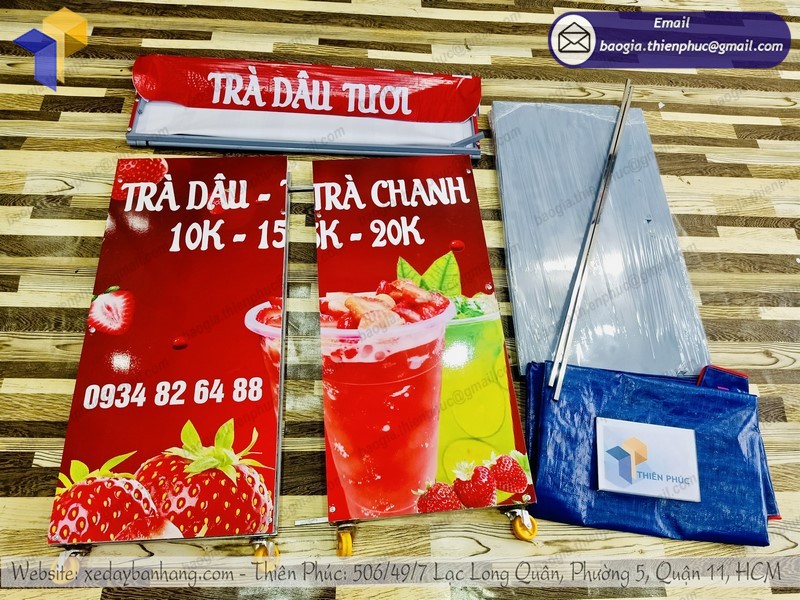 Từ đó, bạn có thể thiết kế được chiếc xe ưng ý nhất theo mong muốn của mình. Bên cạnh hình dáng, kết cấu; bạn còn có thể thiết kế logo để thể hiện thương hiệu của bạn. Đây chính là cơ hội tuyệt vời để bạn thỏa sức sáng tạo. Thiên Phúc sẽ hỗ trợ bạn để tạo ra một quầy trà dâu mang phong cách rất riêng cho bạn.