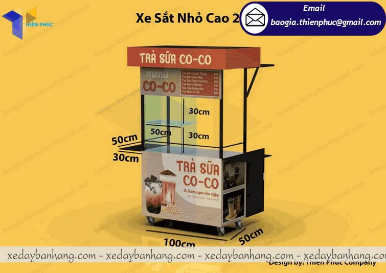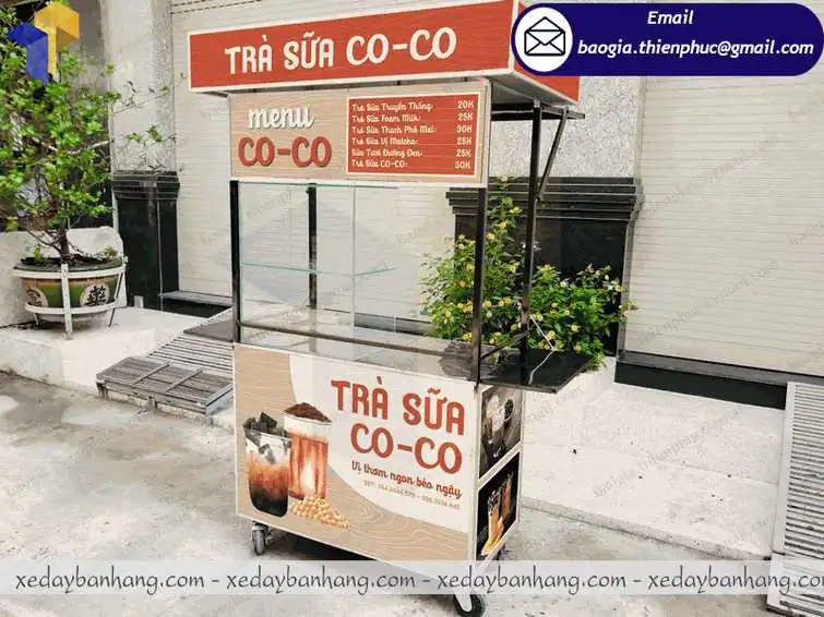 – Địa chỉ bán xe trà sữa: Các loại xe đẩy bán hàng lưu động thường được các xưởng gia công cơ khí sản xuất trong nước. Do vậy để mua được mức giá rẻ và thiết kế theo yêu cầu thì bạn nên tìm và mua xe đẩy trực tiếp tại xưởng.