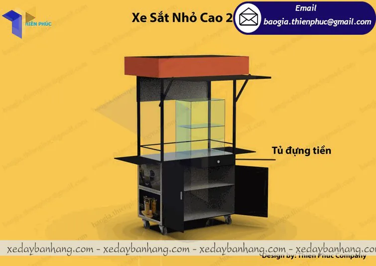 – Kích thước xe đẩy: Những loại tủ xe trà sữa lớn hơn sẽ cần nhiều nguyên liệu gia công hơn. Đồng thời, việc chế tạo các chi tiết cũng phức tạp và đòi hỏi thời gian lâu hơn. Do đó, kích thước xe đẩy càng lớn thì càng tốn nhiều chi phí.