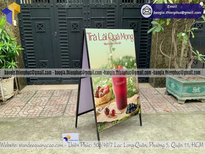 Tên sản phẩm: Biển quảng cáo chữ A chân sắt ngoài trời giá rẻ giới thiệu sản phẩm TRÀ LÀI QUẢ MỌNG