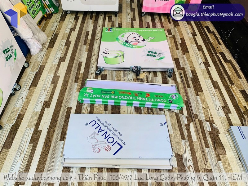 Thiên Phúc chuyên cung cấp và nhận thiết kế, sản xuất các vật phẩm quảng cáo standee, quầy kệ trưng bày sản phẩm,… Trong đó, booth quảng cáo chính là thế mạnh vượt trội nhất của Thiên Phúc.