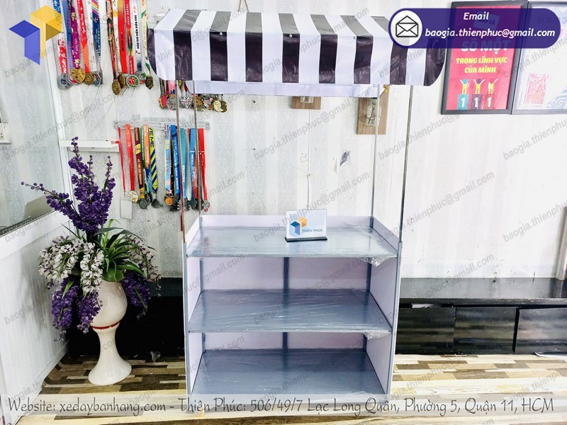 Thiên Phúc là nơi cung cấp các giải pháp thiết kế và thi công quảng cáo. Đồng thời, cũng là thương hiệu xe đẩy bán hàng được nhiều người tin dùng và sử dụng. Ngoài ra, con nhận gia công theo nhu cầu và mong muốn của khách hàng. Chúng tôi luôn đặt tiêu chí “sự hài lòng của quý khách là niềm tự hào của chúng tôi”. Tại Thiên Phúc có vô vàn mẫu mã đa dạng, giá cả phù hợp; chất lượng và uy tín trải dài khắp 64 tỉnh thành với hệ thống vận chuyển xuyên suốt 3 miền với thời gian nhanh nhất.