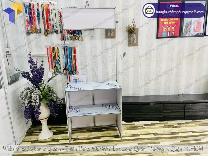 Địa điểm sản xuất và thi công bàn sampling hội chợ