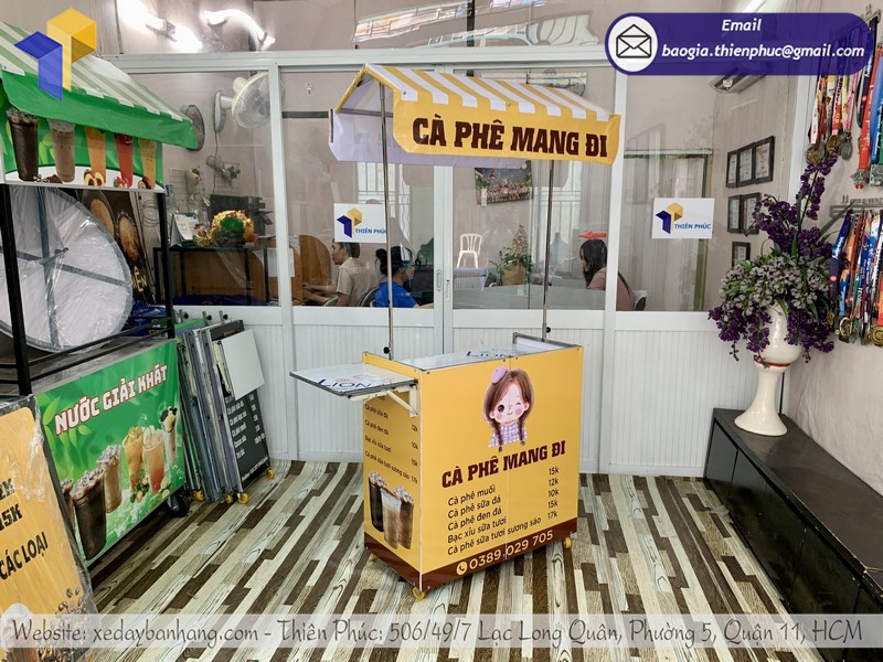 Ngoài ra, khi khách hàng mua sắm xe bán cà phê tại Thiên Phúc. Bạn có thể yên tâm bởi giá thành hợp lý nhất dành cho bạn. Tại đây có đa dạng các loại mẫu mã, dung tích, kích thước phù hợp theo mong muốn và “túi tiền” của bạn. Nếu bạn muốn đặt làm xe bán hàng lưu động theo mong muốn hoặc tư vấn các loại tủ xe. Hãy liên hệ ngay với chúng tôi nhé.