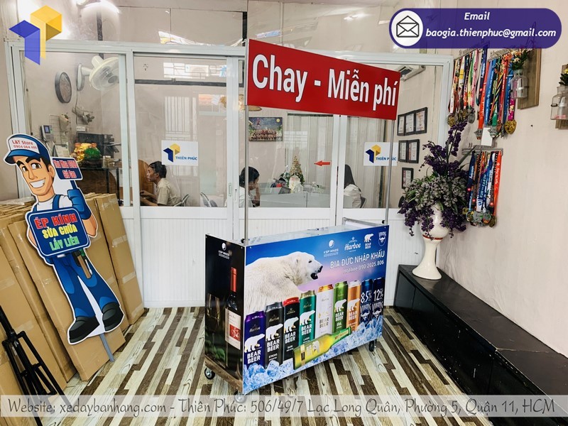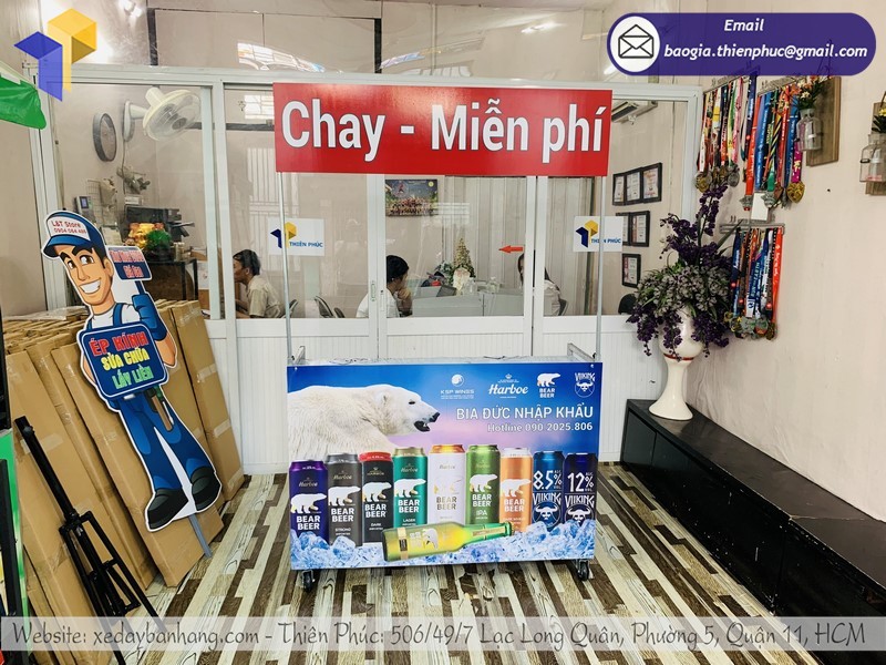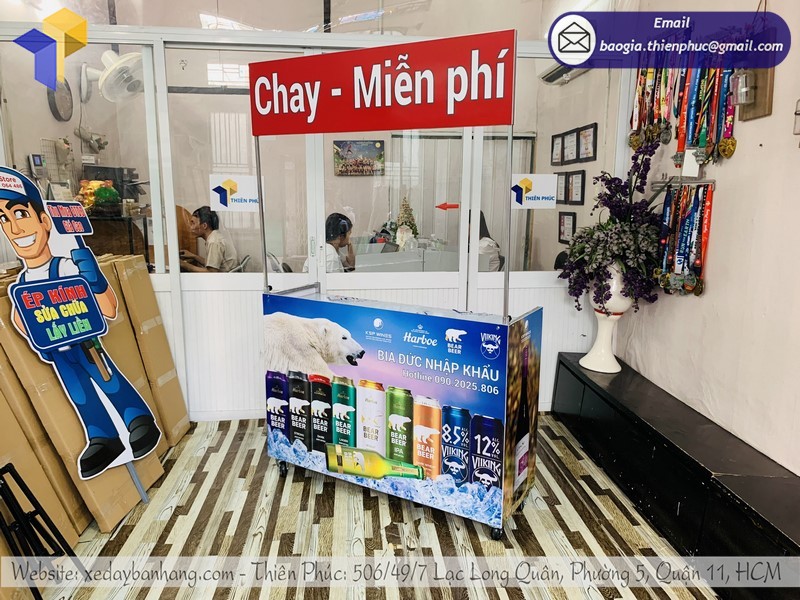 Nắm bắt được xu thế thị trường mong muốn điều gì, vì thế các mẫu booth bán hàng luôn là mặt hàng chủ chốt tại Thiên Phúc. Từ các điểm bán như siêu thị đến các trung tâm mua sắm, cửa hàng bán lẻ hay chợ đều có thể thấy xe quảng cáo siêu thị của Thiên Phúc.