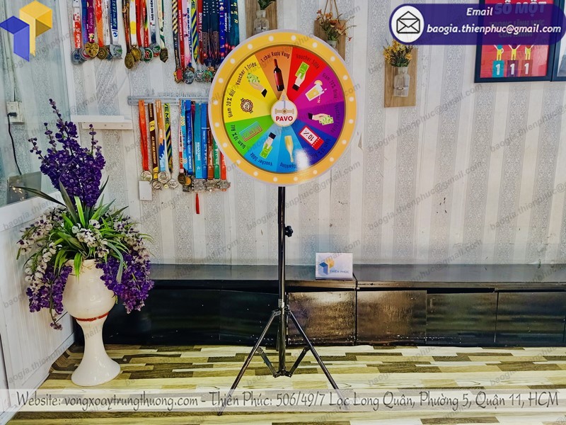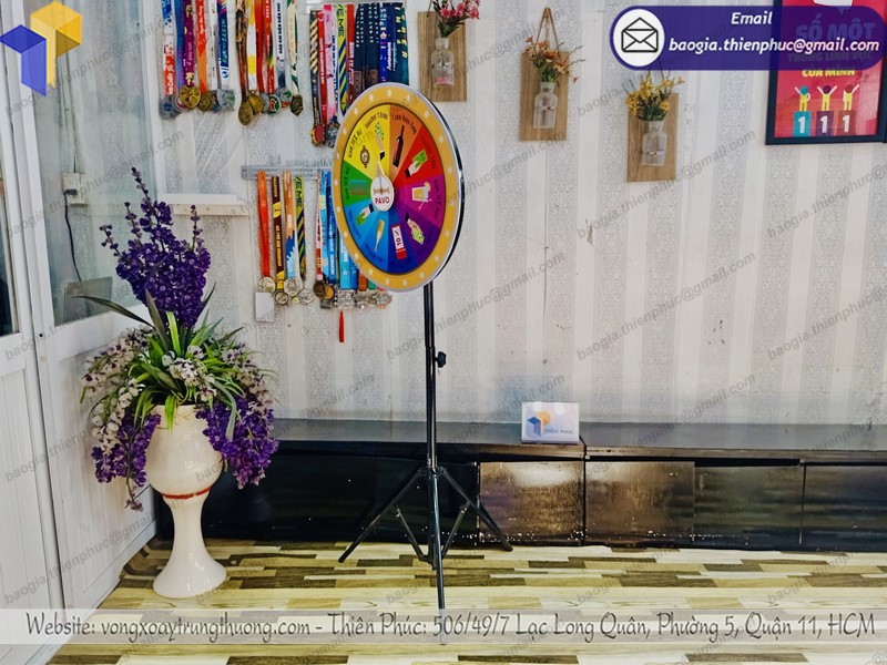 Nếu bạn đang băn khoăn tìm một nhà cung cấp vòng quay may mắn tại TP. Hồ Chí Minh nói riêng và toàn quốc nói chung thì Thiên Phúc có thể là một lựa chọn. Chúng tôi có kinh nghiệm lâu năm trong lĩnh vực sản xuất sản phẩm này, có thể cung cấp bất kể số lượng vòng quay nào trong một thời gian ngắn. Thông thường, mỗi chương trình sự kiện sẽ chỉ sử dụng đến một vòng chân xếp trúng quà nhưng thử tưởng tượng, nếu bạn đang phải lo cho sự kiện diễn ra tại rất nhiều điểm cùng lúc? Đó là lúc bạn cần một số lượng lớn.