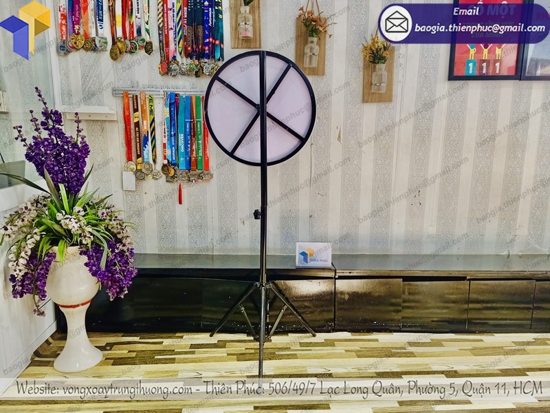 Vòng chân xếp trúng quà kích thước lớn, nội dung tùy biến là thứ không có sẵn trên thị trường, do đó, bạn thường phải đặt hàng gia công. Với mỗi một chương trình cụ thể, chúng ta lại có thể thiết kế những mẫu vòng quay may mắn khác nhau sao cho phù hợp.