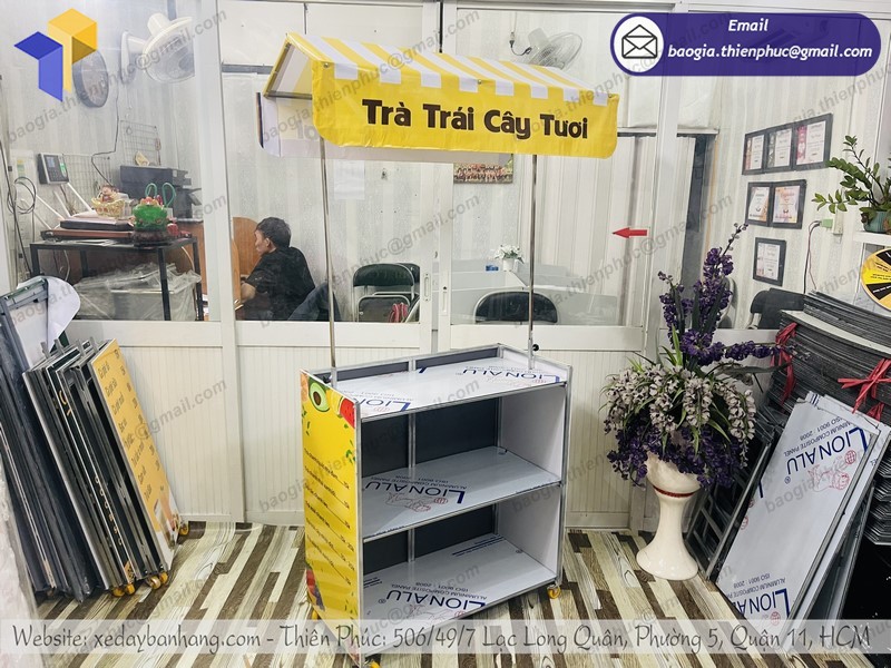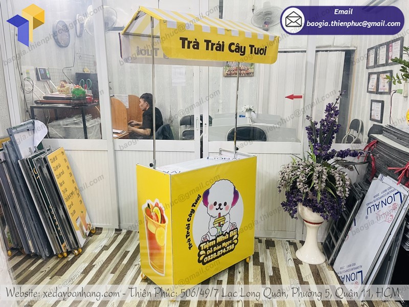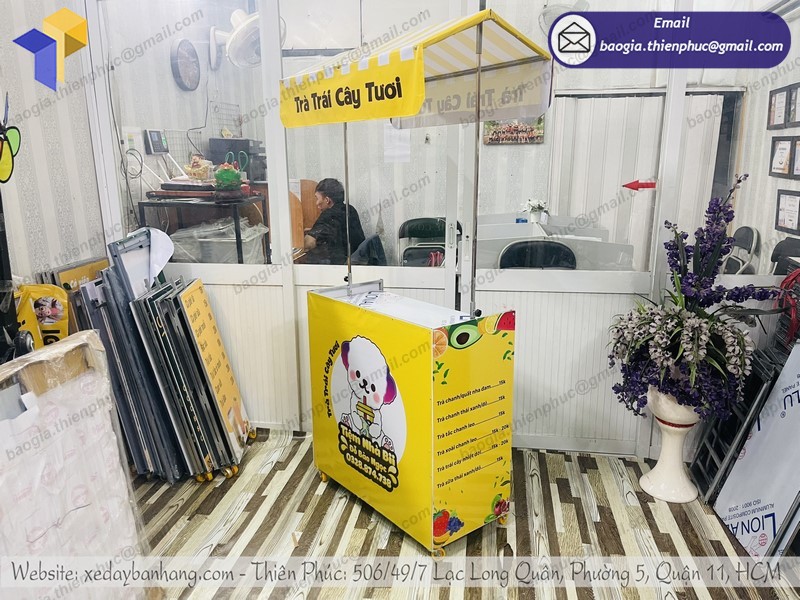 Với hơn 7 năm kinh nghiệm tay nghề sản xuất và phân phối trực tiếp dòng mẫu sản phẩm xe bán trà trái cây, Thiên Phúc là một trong những địa chỉ nhận đặt, phong cách thiết kếxe bán trà trái cây theo nhu yếu ĐỘC – LẠ – GIÁ RẺ nhất lúc bấy giờ .