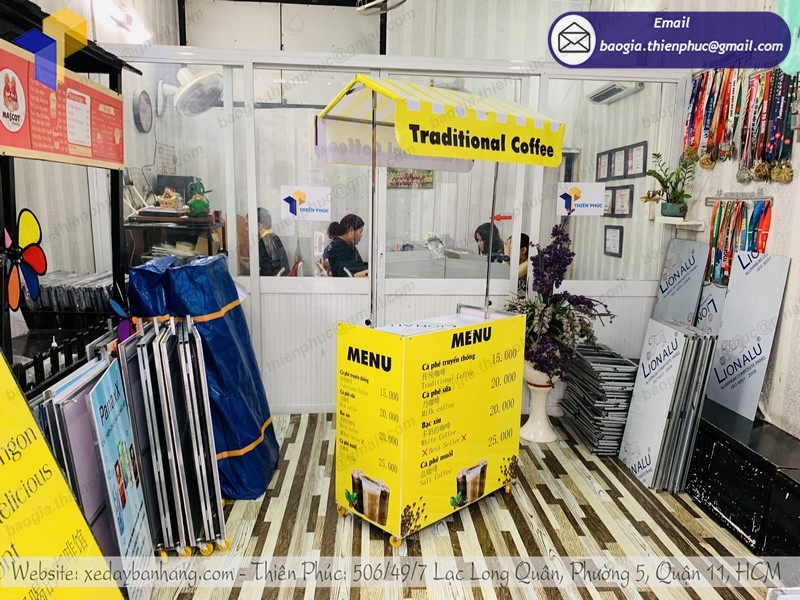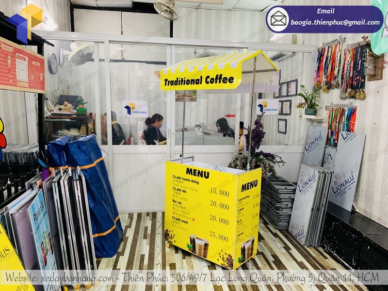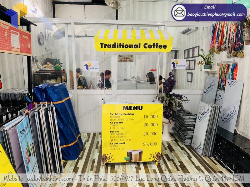 • Mua xe bán cà phê mang đi khoảng 1- 6 triệu (xe inox, xe được trang trí đẹp, có dàn loa, thùng đá chuyên dụng).