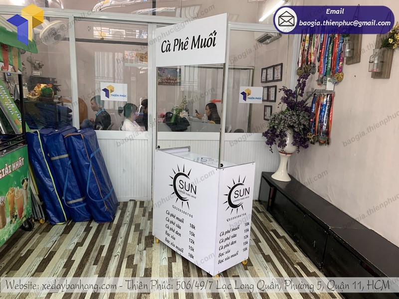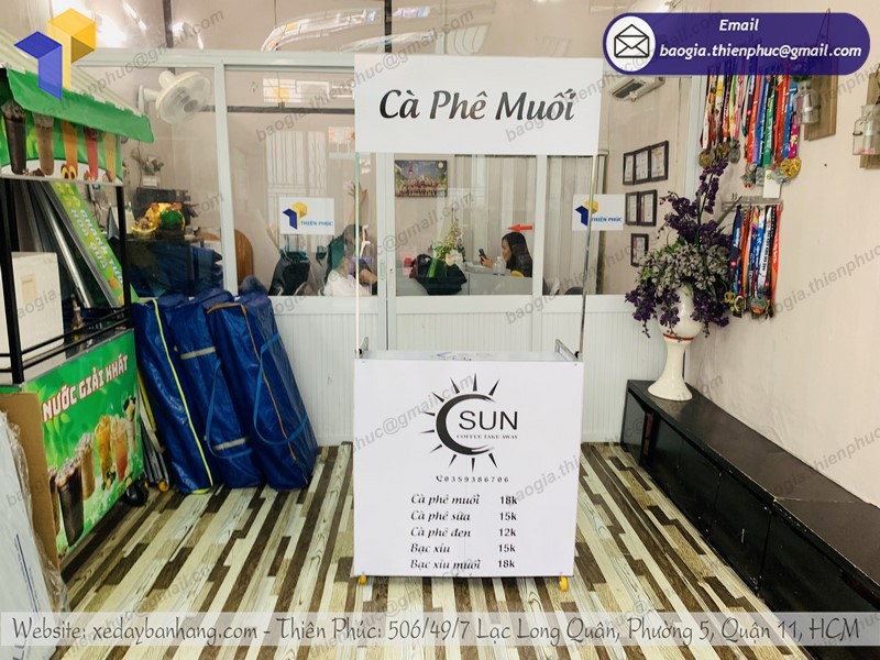 Đặt mua xe lưu động bán cafe tại Thiên Phúc bạn sẽ nhận về mình nhiều ưu đãi cực Shock. Giá bán của Thiên Phúc dao động ở mức 1 – 10 triệu đồng tùy thiết kế. Phương tiện BH trọn bộ trong thời gian 1 năm, hỗ trợ thay thế linh kiện chính hãng. Ngoài ra, đơn vị còn nhận đặt thiết kế cũng như sản xuất các mẫu theo yêu cầu riêng của KH với giá phải chăng.