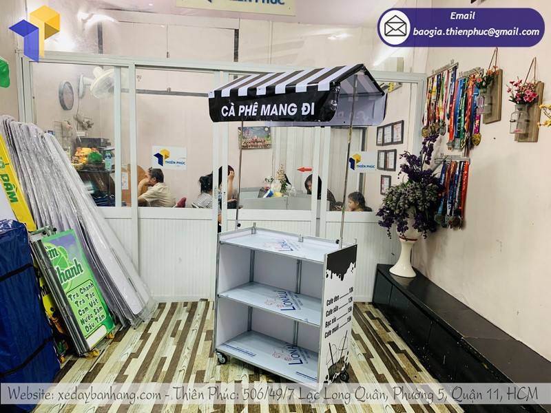 + Xe đẩy bán cà phê sẽ có mái che sẽ giúp cho bạn có thể bán cà phê trong mọi loại thời tiết.