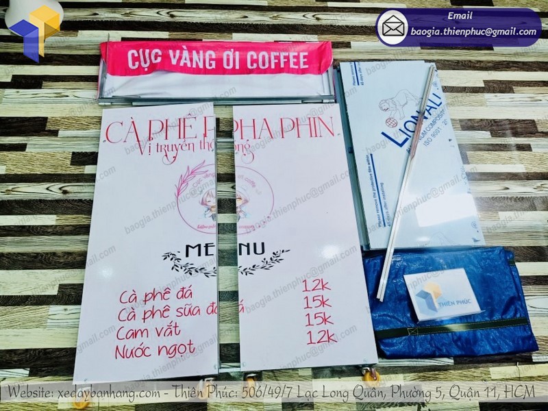 Chi tiết xe cafe take away lắp ráp do Thiên Phúc sản xuất