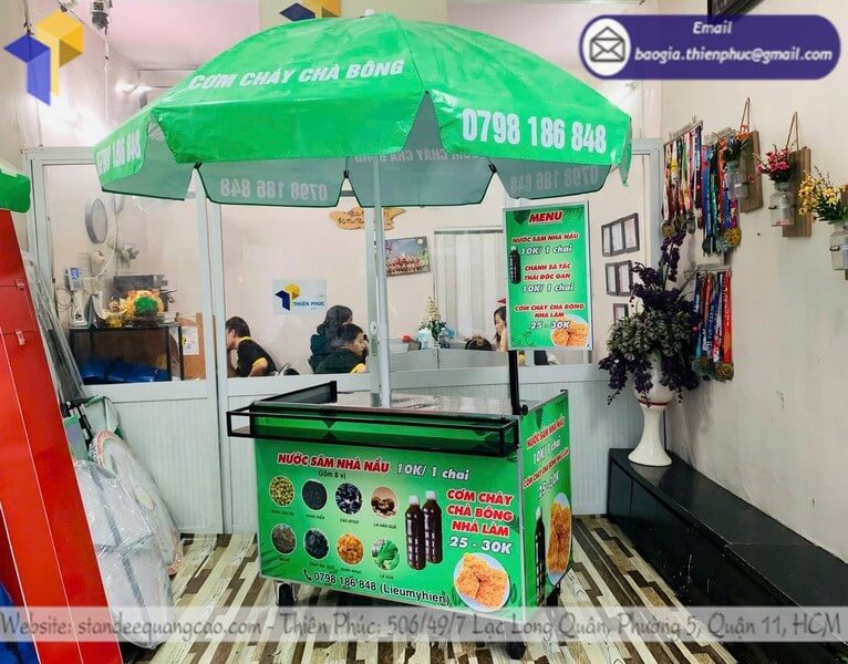7.Thiên Phúc chuyên sản xuất, thiết kế và in ấn Xe nước sâm có gắn ô dù quảng cáo