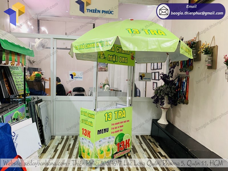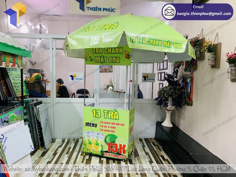 Công ty TNHH SX KD XNK Thiên Phúc với nhiều năm kinh nghiệm trong ngành sản xuất các dòng xe đẩy bán hàng uy tín nhất trong thị trường. Công ty hoạt động đã nhiều năm và được rất nhiều khách hàng tin tưởng và sử dụng lựa chọn khi mua xe đẩy bán trà chanh giá rẻ. Tại Thiên Phúc sẽ hỗ trợ cho bạn những mẫu thiết kế xe đẩy riêng theo ý của bạn. Đặc biệt, khi mua xe bán trà chanh lắp ráp tại đây khách hàng sẽ vô cùng yên tâm khi Thiên Phúc có một chính sách bảo hành vô cùng tốt và chính sách hỗ trợ giao hàng trên toàn quốc và cà nước ngoài.