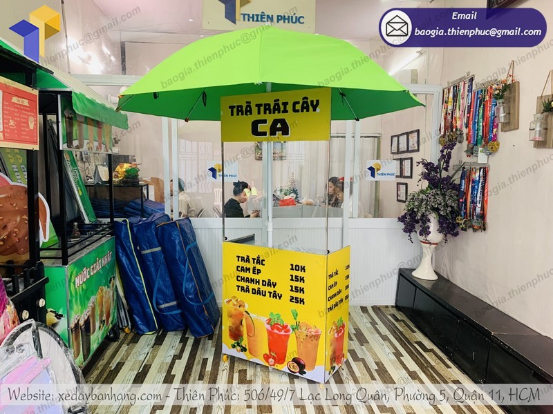 Đến trực tiếp cơ sở sản xuất chứng kiến các mẫu xe xếp bán trà trái cây đang được gia công hoặc tham khảo kiểu dáng trên website, cataloge Thiên Phúc.