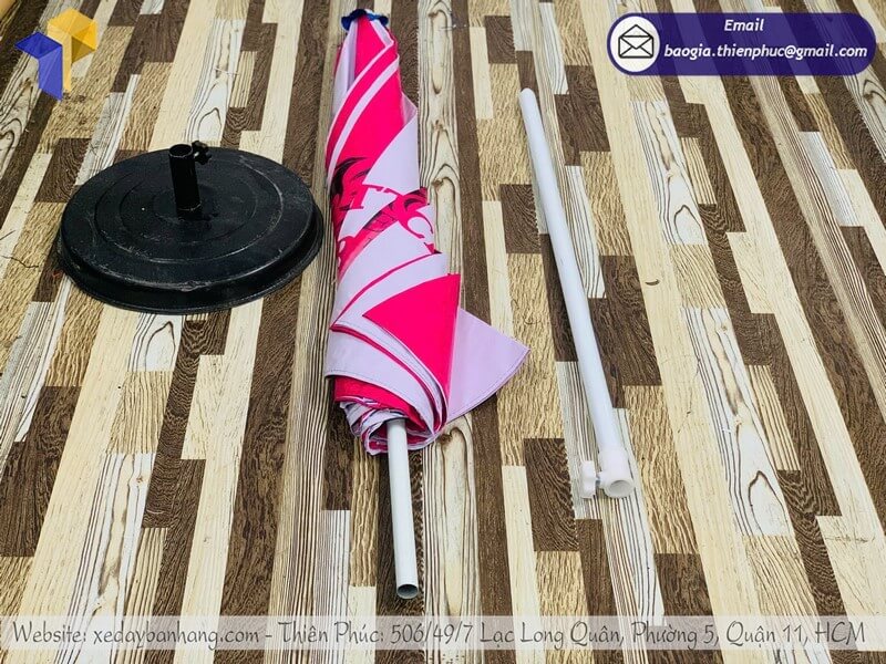Hiện tại dù tròn quảng cáo ngoài trời với mức giá dao động chỉ từ 600.000đ/cây – 800.000đ/cây trở lên (chưa tính đế dù. Khi mua lẻ đế dù không kèm ô dù tròn: 150.000đ/cái. Khi mua chung với ô dù tròn quảng cáo có in logo thương hiệu: 100.000đ/cái đế), có hỗ trợ đổi áo dù 220.000đ/cái. Chúng tôi, Xưởng sản xuất – Công Ty Thiên Phúc hỗ trợ giao nhanh trong ngày trong khu vực TP.HCM đối với đơn hàng đã có mẫu thiết kế sẵn. Khách có thể xem và duyệt mẫu, Ngoài khu vực TP.HCM : Hà Nội, Kiên Giang, Hưng Yên, Cà Mau, Vĩnh Long, Đà Nẵng, Phú Quốc, Nha Trang, Phú Quốc, Nghệ An,.… giao nhanh trong vòng 2-3 ngày. Tùy thuộc vào số lượng đơn đặt hàng sỉ hay lẻ và đơn vị vận chuyển như Viettel Post, Vietnam Post, J&T, GHTK,… Dưới đây là bảng báo giá tham khảo chi tiết được cập nhật mới nhất tại xưởng sản xuất THIÊN PHÚC tháng 12-2025, khách hàng có thể lựa chọn phù hợp với ngân sách: