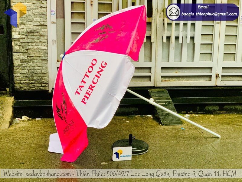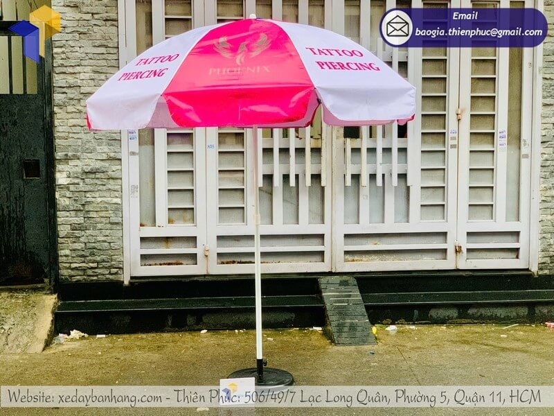 Cơ sở sản xuất dù tròn quảng cáo ngoài trời giá rẻ - Thiên Phúc là xưởng chuyên sản xuất, in ấn và thiết kế logo thương hiệu dù tròn quảng cáo ngoài trời với giá dao động chỉ từ trên 600.000đ/cây đến 800.000đ/cây (chưa bao gồm đế dù: 150.000đ/cái). Với trên 10 năm kinh nghiệm trong sản xuất, Thiên Phúc cam kết chất lượng mẫu mã uy tín. Hãy liên hệ ngay với chúng tôi để được báo giá nhanh chóng.