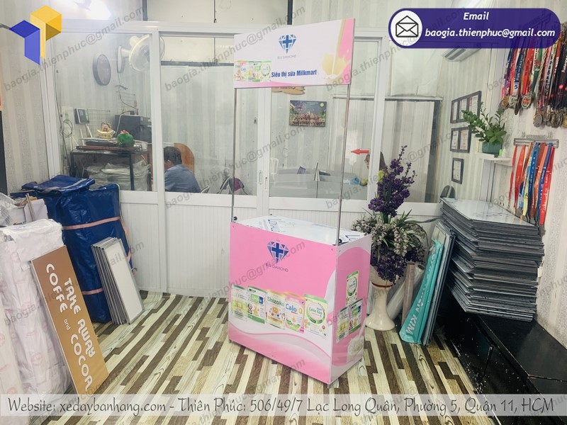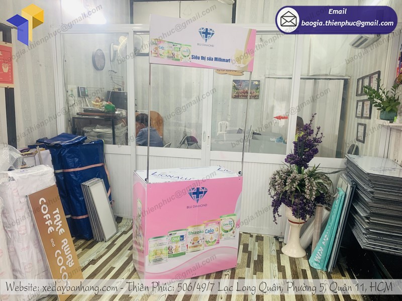 Báo giá sản xuất booth sampling, thi công booth quảng cáo