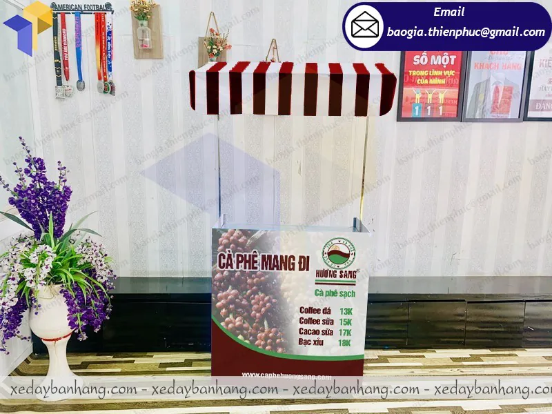 Quý khách hàng đang cần nơi cung ứng kệ lắp ráp bán cà phê sữa đá không ngừng cập nhật mẫu mã mới để kinh doanh buôn bán phục vụ cho việc kinh doanh của bạn hay việc phát triển hệ thống.Vậy còn chần chờ chi nữa hãy đến ngay với Thiên Phúc chuyên nhận đóng theo yêu cầu cho quý khách, nhận cung cấp số lượng lớn mẫu trang trí xe cafe take away theo mẫu mã quý khách đã thiết kế. Với nhiều năm kinh nghiệm trong lĩnh vực thiết kế các mẫu xe bán hàng lưu động, booth bán hàng lăp ráp uy tín, chất lượng, cùng đội ngũ nhân viên lành nghề, trách nhiệm. Thiên Phúc cam kết sẽ đem đến khách hàng những mẫukệ lắp ráp bán cà phê sữa đá chất lượng nhất, mẫu mã đa dạng nhất, với giá cả hợp lý nhất!