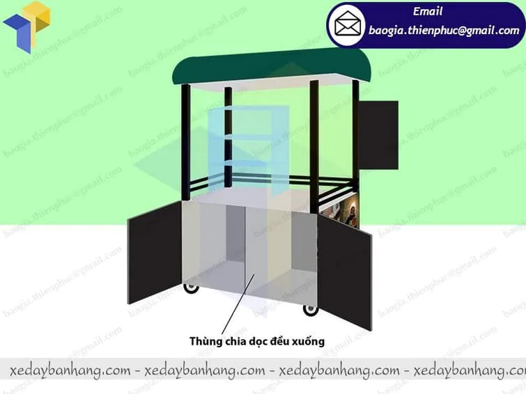 Những chiếc xe bán thức ăn nhanh lưu động được thiết kế sáng tạo, với nhiều ngăn tiện lợn, sử dụng chất liệu nhựa, inox hay thiếc sẽ đảm bảo độ bền cao, chịu nhiệt tốt, cửa kính thoáng mát, ngăn bụi bẩn, ruồi nhặng xâm phạm. Ngoài ra còn có cả mái che, bánh xe đẩy vừa tiện lợi lại chẳng mất nhiều công sức di chuyển từ nơi này đến nơi khác.