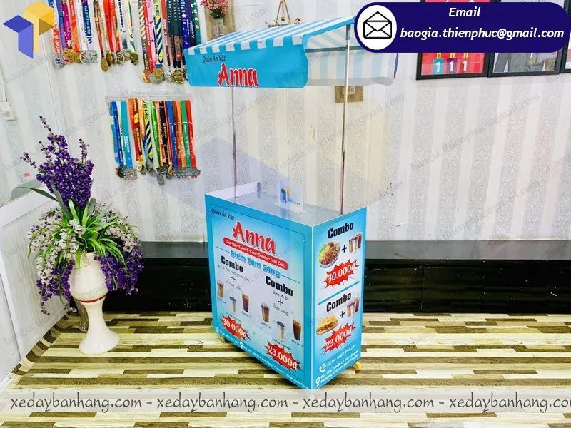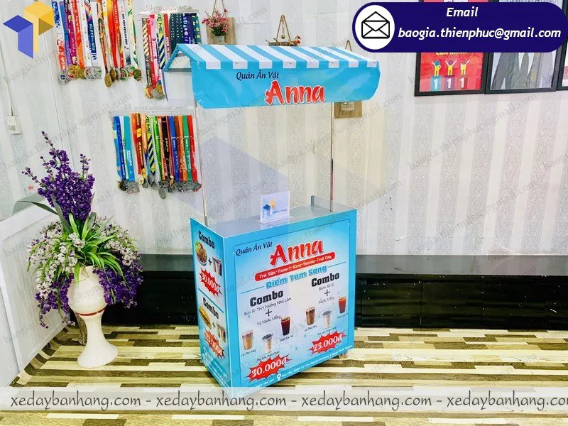 bàn lắp ráp bán đồ ăn vặt này sẽ đảm bảo những tiêu chí mà bạn mong muốn. Có thể quảng bá thương hiệu cho khách tiêu dùng thậm chí khách vãng lai, đáp ứng được nhu cầu thị trường hiện nay, có thể di chuyển dễ dàng ở bất kì đâu bạn muốn vùa là bàn lắp ráp bán đồ ăn vặt tiện dụng vừa là quầy giao đồ ăn di động tùy theo cách bạn sử dụng